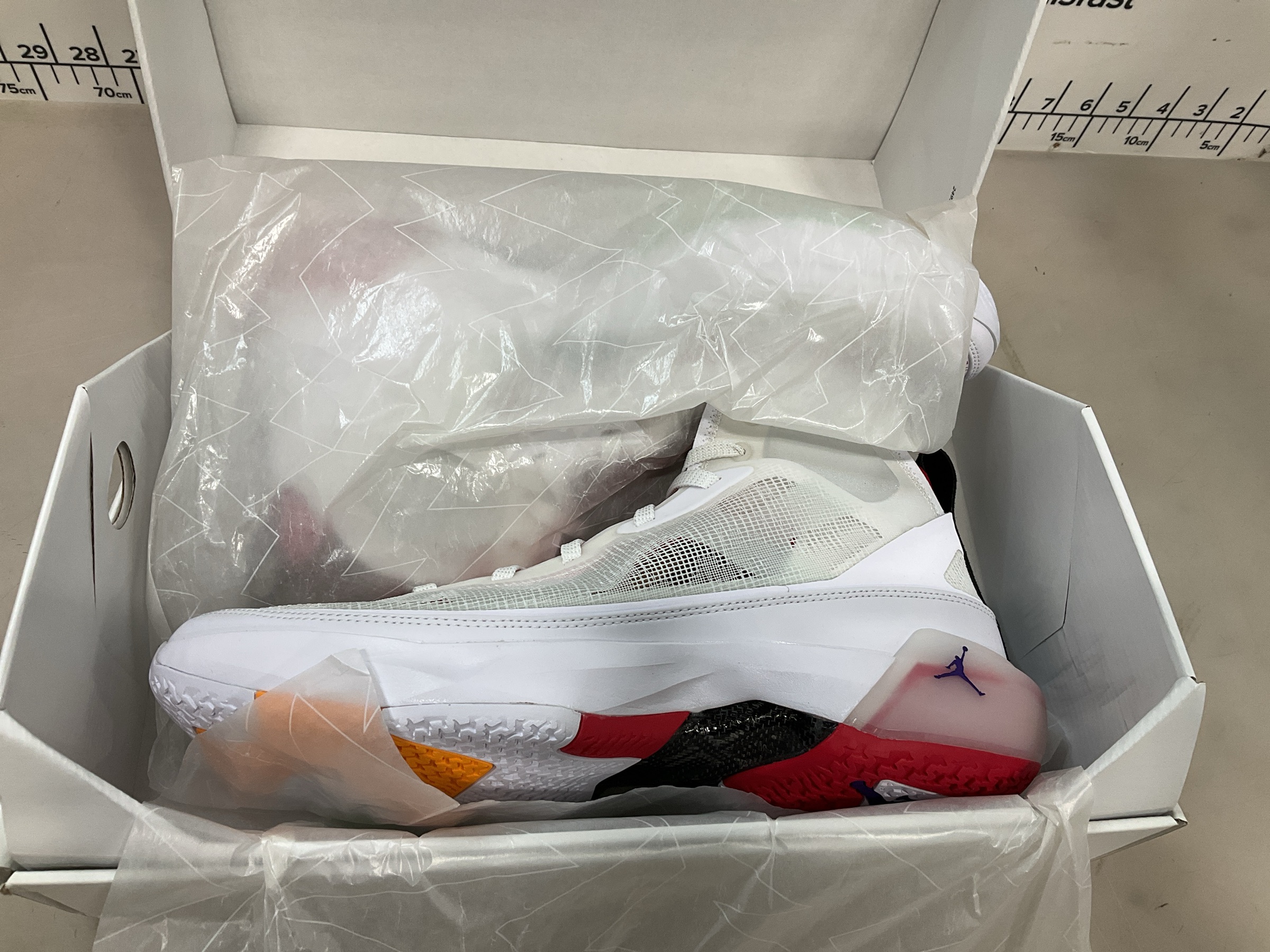 Nike Men's Air Jordan XXXVII Basketball Shoe - DD6958 060 Size: 13 Men - 14.5 Women Color: LIGHT BONE/FIRE RED-BLACK OS CLAIR/NOIR/ROUGE FEU