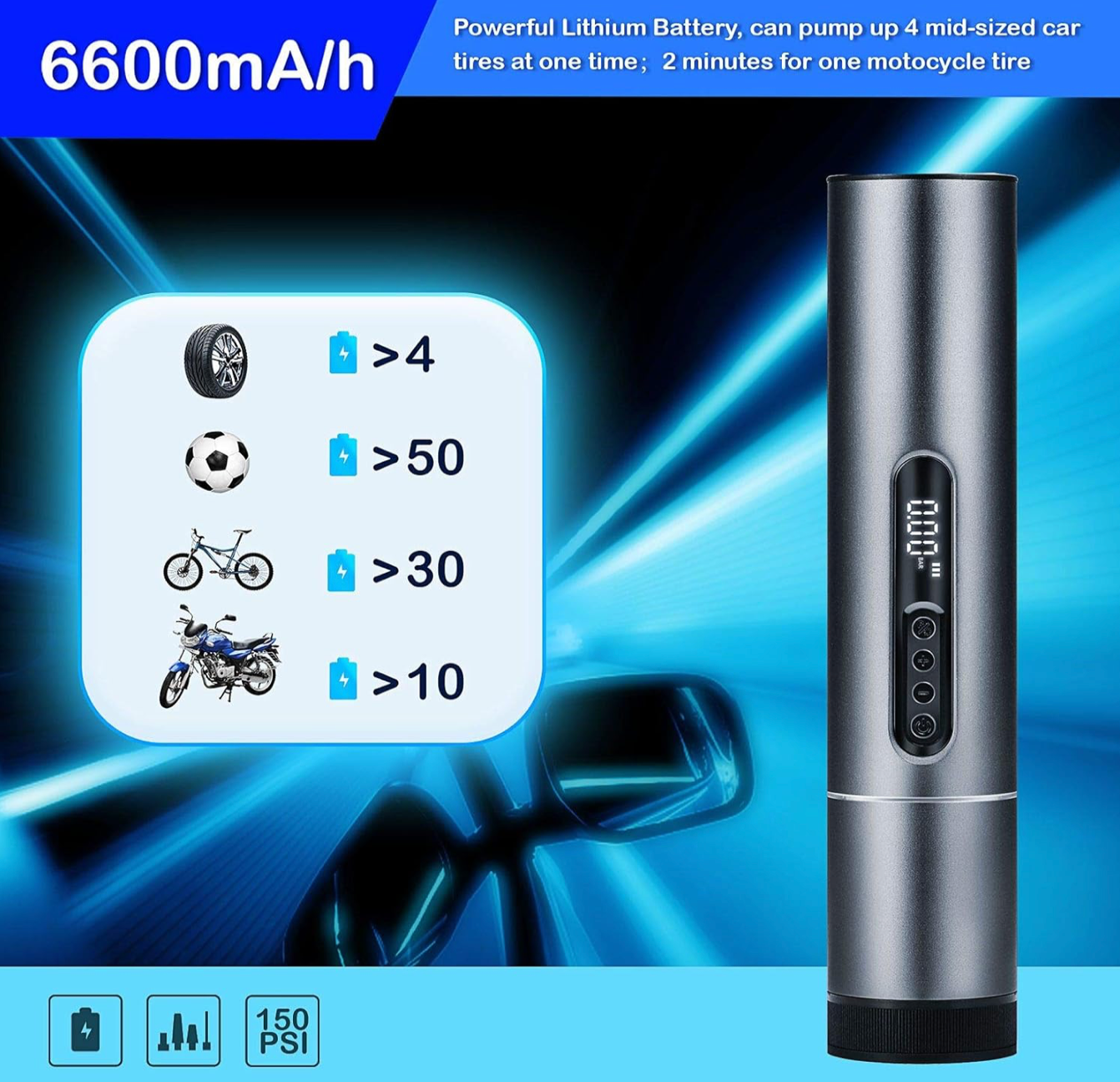 REALSUN Handheld Air Compressor Built-in Digital Pressure Gauge, Cordless Electric Pumps for Car Bicycle Motorbike Balls Tires